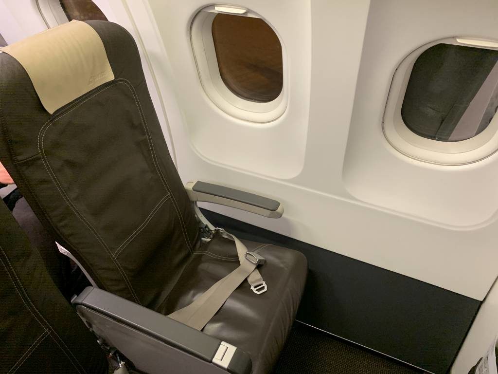 Die Swiss Airbus A321 verfügen über die übliche 3-3-Bestuhlung. Dabei gibt es drei Konfigurationen mit bis zu 219 Sitzen. Die Economy Class wird von der Business Class durch einen Vorhang getrennt. Der Vorhang war bei unserem Flug ziemlich weit hinten noch hinter der ersten Notausgang-Reihen. Wir haben uns das mit Gewichtsverteilung bei diesem eher wenig ausgelastetem Flug erklärt. Laut SeatGuru scheint es jedoch im A321 regulär eine von drei Konfiguration mit 68 Business Class und 108 Economy Class sitzen zu geben.