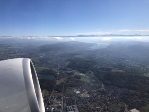 Dazu kam die typische Swiss Schoggi. Anschließend hatten wir noch ein angenehmes Gespräch mit einer Flugbegleiterin über das Fliegen, die Pandemie und die Zukunft des Reisens. Dies brachte uns gleich noch mehr Schokolade ein und versüßte den Start in den Urlaub.