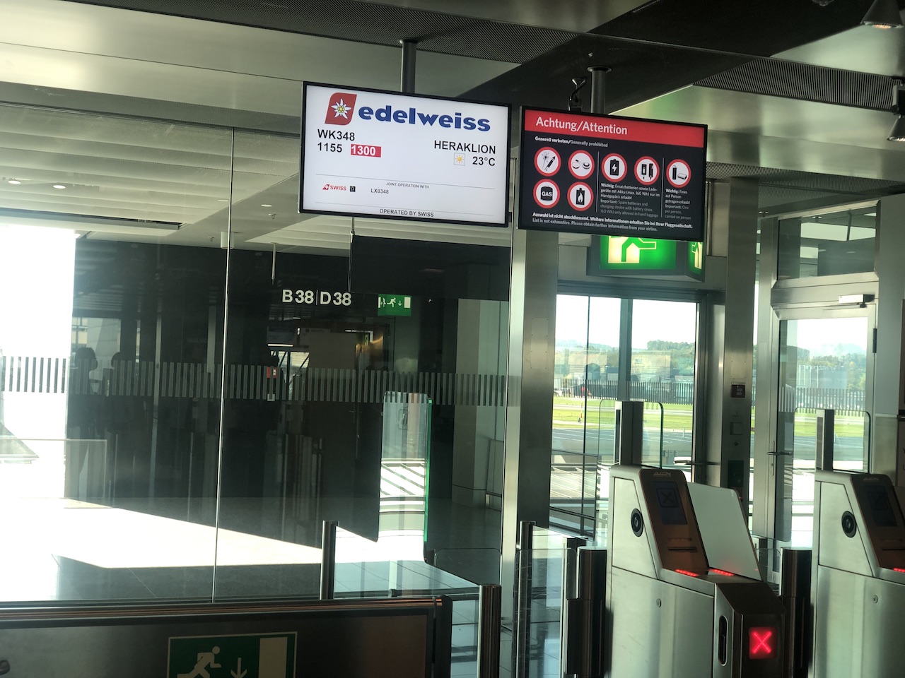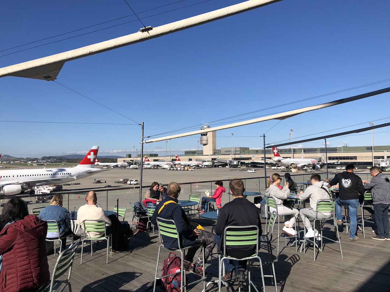 Nach einem Frühstück in der Lounge und einem Stopp auf der sonnigen Besucherterasse ging es zum Gate. Dort war bereits viel Trubel, leider wurde das Einsteigen immer weiter verzögert.