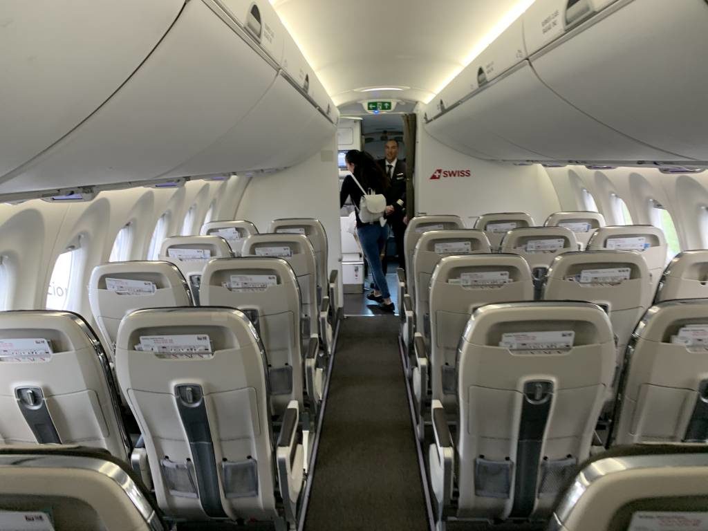 Swiss Economy Class im Airbus A220 von Zürich (ZRH) nach Düsseldorf (DUS) | Kabine und Sitz