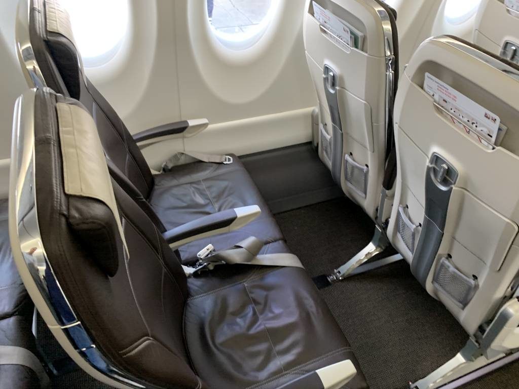 Wir hatten die Sitze 17A und 17C. Die Beinfreiheit war nicht großzügig, aber für unsere Körpermaße und den kurzen Flug völlig Okay.