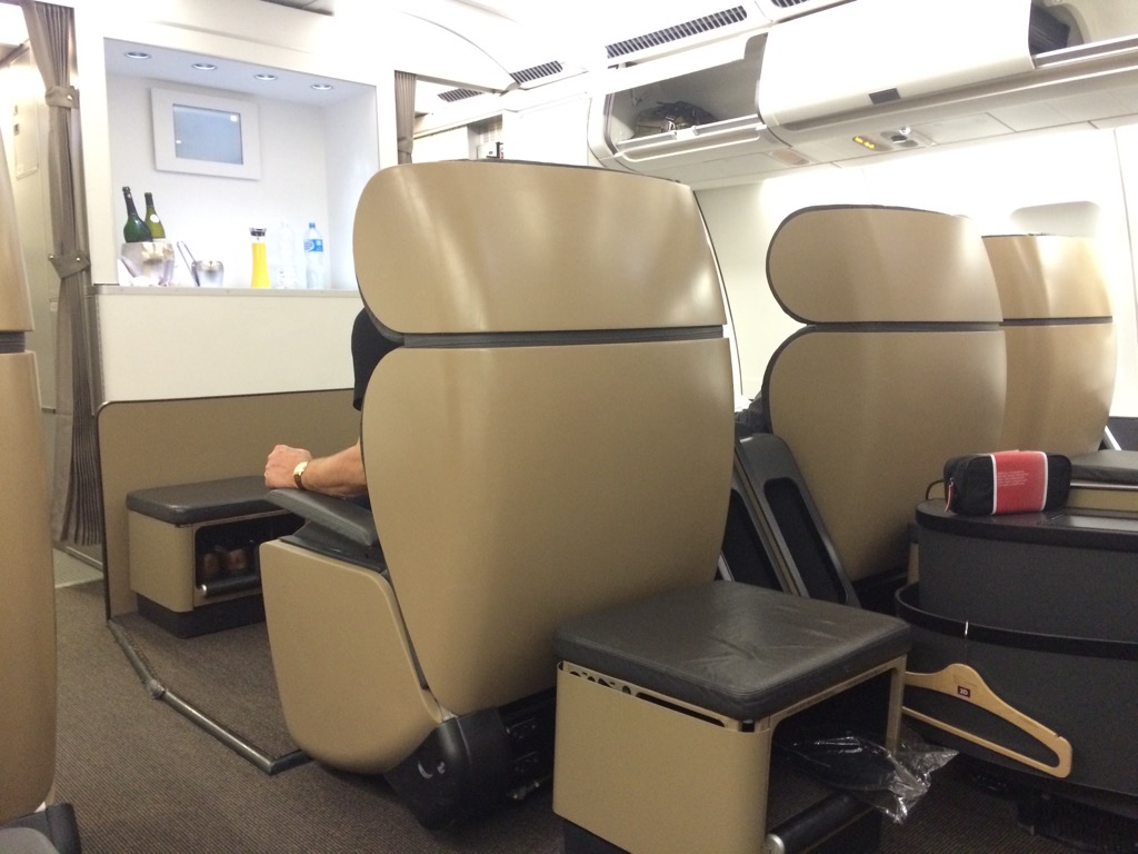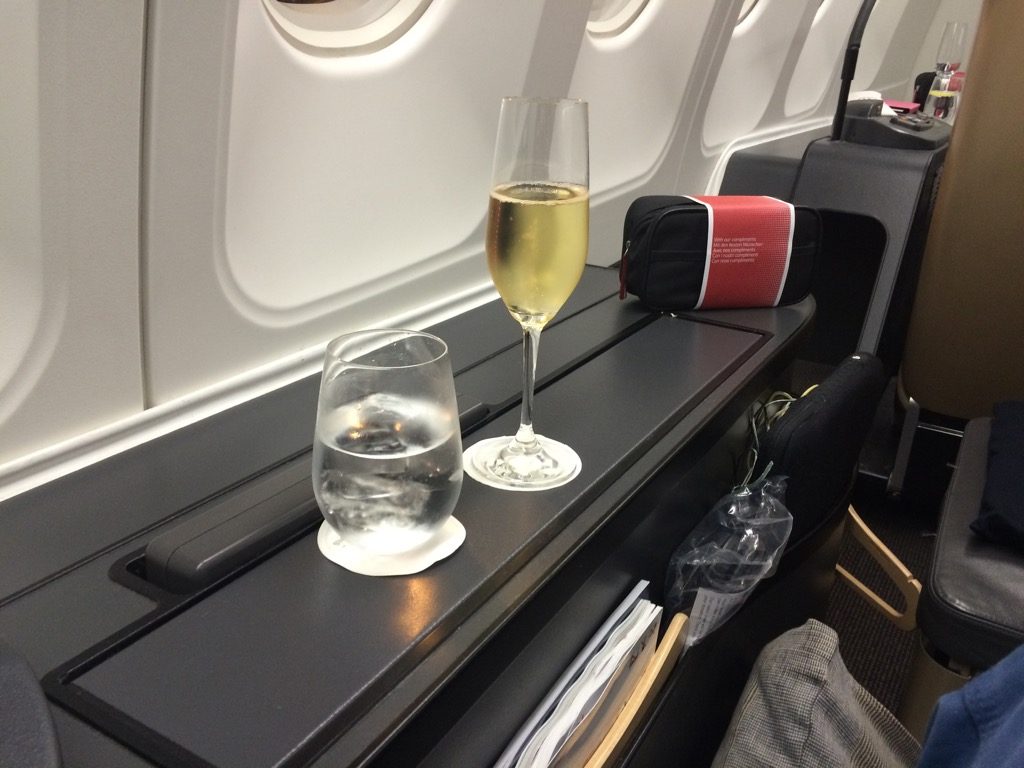 Ich kann nicht genug positives über die First Class Crew dieses Fluges sagen. Die zwei Damen waren freundlich, herzlich, schnell, professionell und immer zur Stelle. Schon an der Flugzeugtür wurde ich von beiden mit Namen begrüßt und mein Mantel in meinem Arm wurde mir direkt abgenommen, während man mich zu meinem Sitz begleitete. Kaum hatte ich mein Handgepäck verstaut und Platz genommen wurde mir auch schon ein Getränk angeboten.