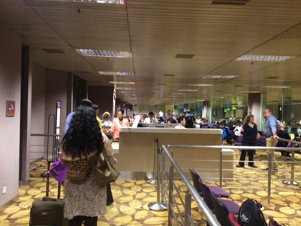 In Singapur findet die Sicherheitskontrolle direkt an jedem Gate statt. Die Personal Assistents positionieren dabei die First Class Passagiere am Anfang der Schlange, sodass man zwar ohne Wartezeit durch die Sicherheitskontrolle gehen kann, allerdings sammelt man hierdurch einige böse Blicke der Mitreisenden.