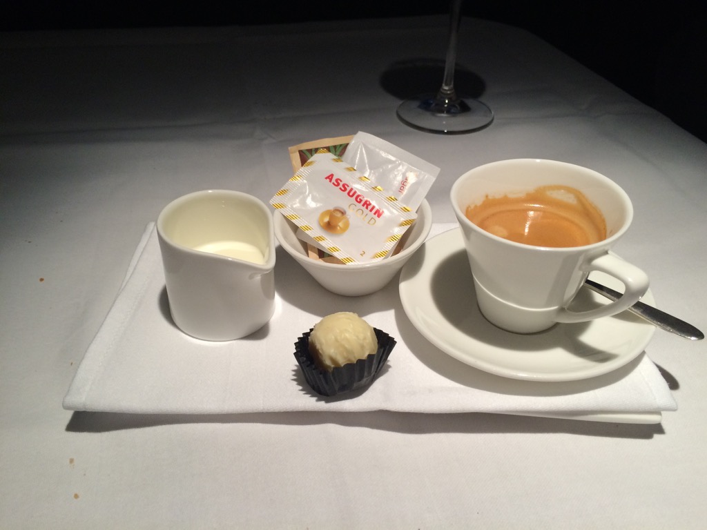 Nach der Hauptspeise habe ich auf den Käse und das Dessert verzichtet und und beendete das Abendessen mit einem Espresso, bevor ich mich meiner Müdigkeit ergeben habe.