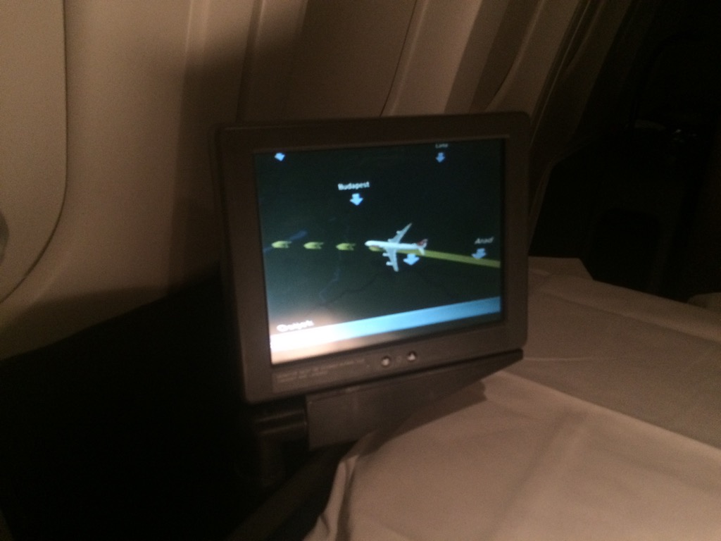 Der Fernseher in der Swiss First Class im Airbus A340-300 ist deutlich kleiner als das, was man in einer First Class erwartet. Allerdings ist er mit seiner Position nahe am Passagier in meinen Augen ausreichend, wobei ich das IFE auch nur sehr wenig im Flugzeug nutze. Auf diesem Flug habe ich nur die moving map genutzt.