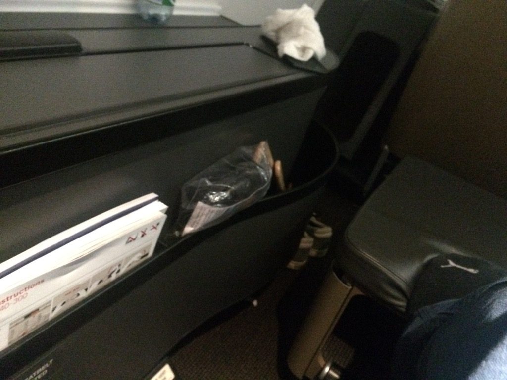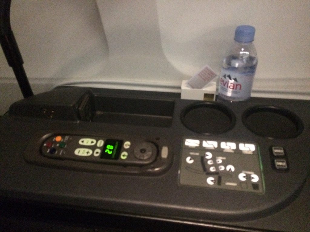 In der Seitenkonsole des Sitzes findet man neben dem Tisch und der Sitzverstellung auch noch einige Ablagen. Auch wenn es nicht viele Ablagen sind, hatte ich nie Probleme, alles was ich während des Fluges benötigte zu verstauen.