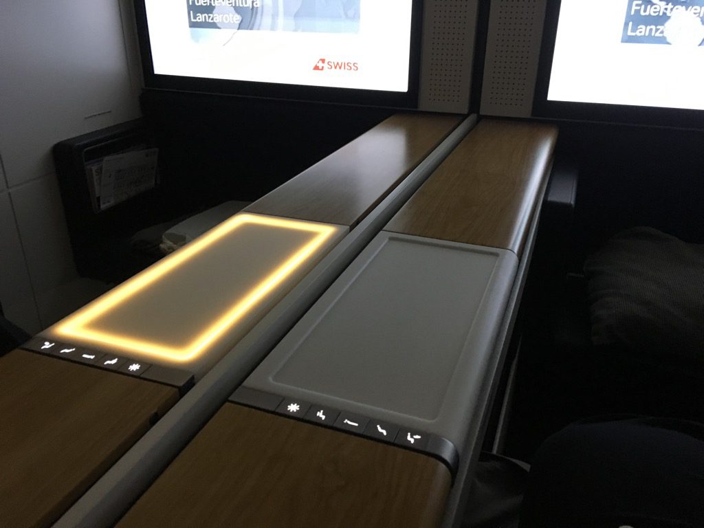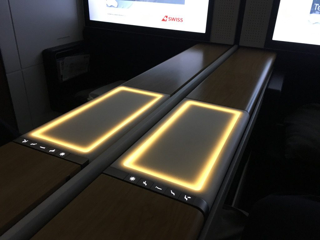 Was in der Swiss First Class der Boeing 777 neu ist, sind die elektronischen Fensterblenden. Wie man es aus Privatjets kennt, oder auch aus anderen First Class Produkten, wie bei Lufthansa, lassen sich alle drei Fenster eines jeden Sitzes auf Knopfdruck verdunkeln. Dieses System hat allerdings auch seine Tücken, so hat man versehentlich während des Fluges einmal alle Fensterblenden aus der Galley heraus geöffnet, woraufhin die Kabine taghell war und alle Passagiere wach.