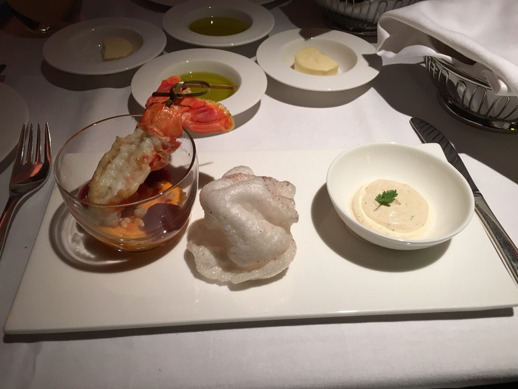 Als Vorspeise entschied ich mich, wie immer bei Swiss, für den Lachs. Dieser ist quasi der Kaviar Ersatz bei Swiss. Auch den Babyhummer habe ich mir als zweite Vorspeise bestellt. Beides war fantastisch.