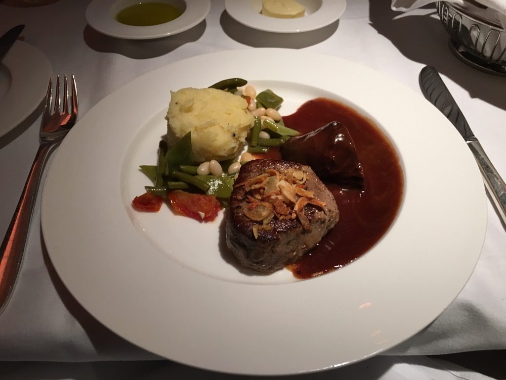 Mein Kalb als Hauptgang war ebenfalls sehr gut. Die Swiss Flugbegleiter haben hier wieder einmal unter Beweis gestellt, was sie alles aus einer Flugzeugküche herausholen könne. Das Kalb war wunderbar rosa, was in einem Flugzeug wirklich schwer ist.