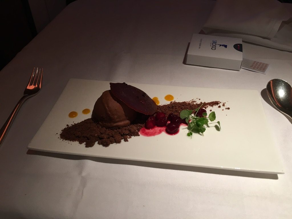 Ich musste leider auf den wunderbaren Käsegang verzichten und habe sofort mein Dessert bestellt. Insbesondere die wunderschöne Präsentation hat mir gefallen.
