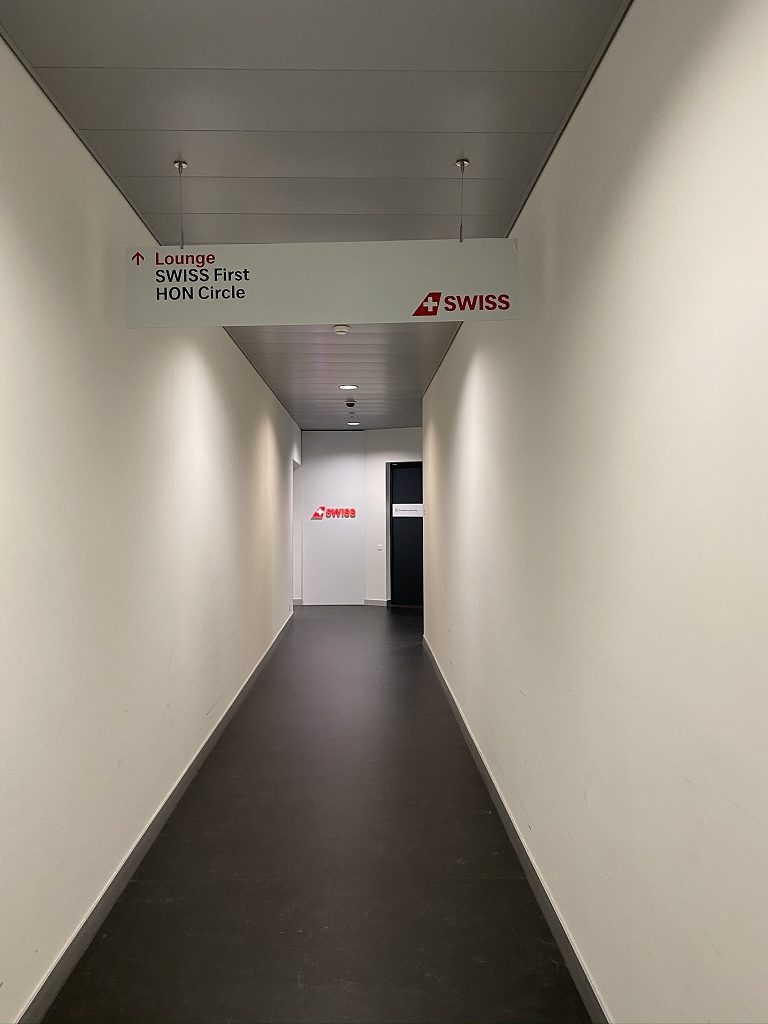 Noch mit den netten Worten des Pursers im Ohr, begab ich mich auf die Suche nach der Swiss First Class Lounge im Terminal A. Diese liegt gut versteckt hinter einer unscheinbaren Tür und einem darauffolgenden Gang.