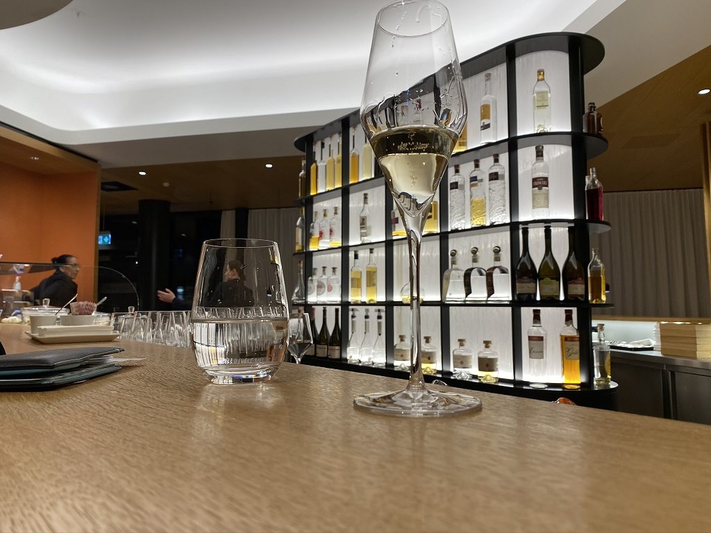 Zur Begrüßung wurde mir ein Glas Champagner angeboten, welches ich natürlich gerne annahm. Auch ein kleiner Gruß aus der Küche wurde gereicht, ein sehr angenehmer Start.
