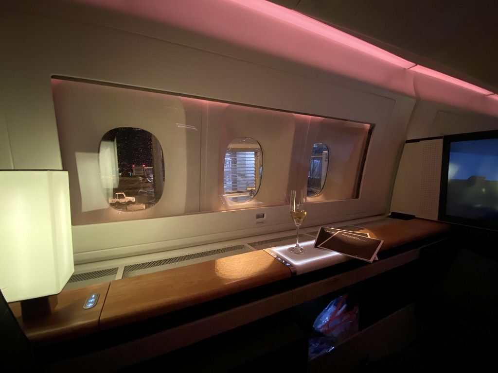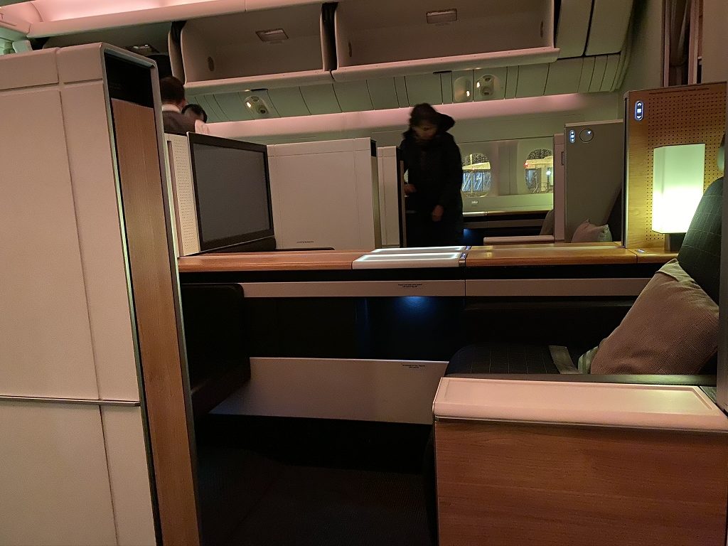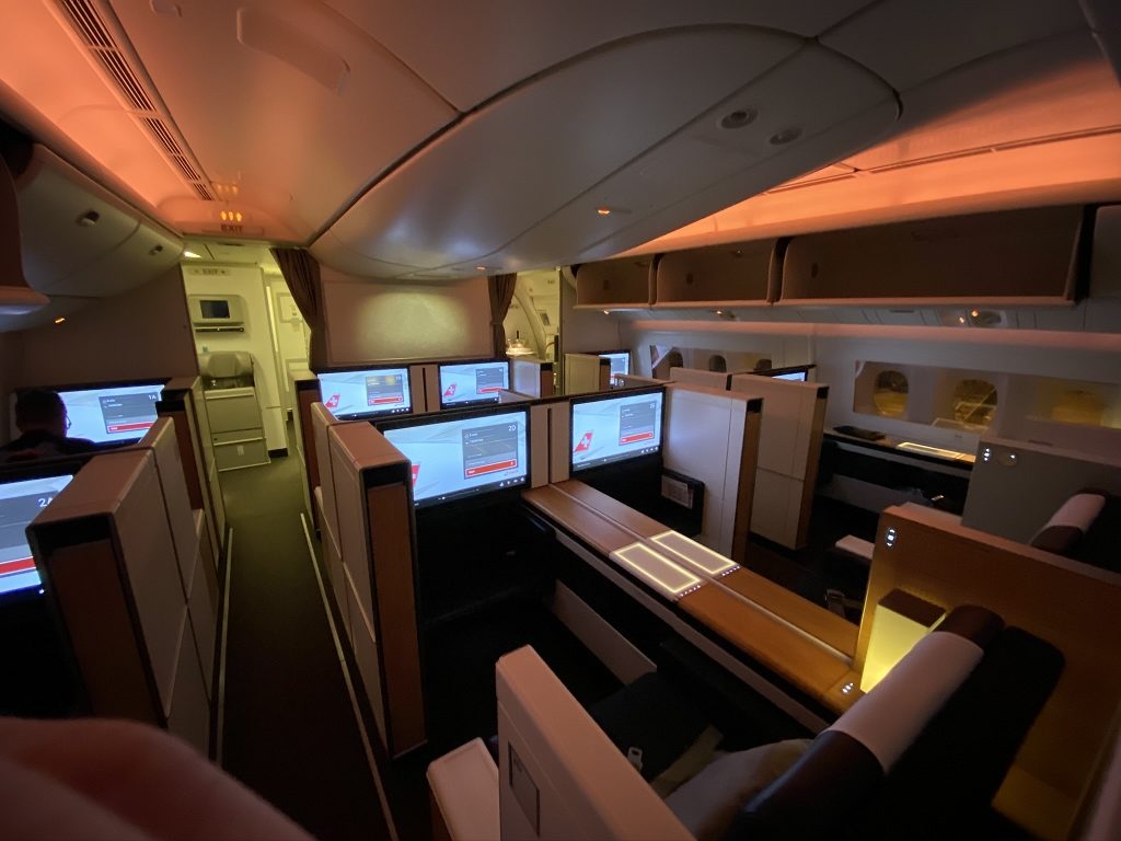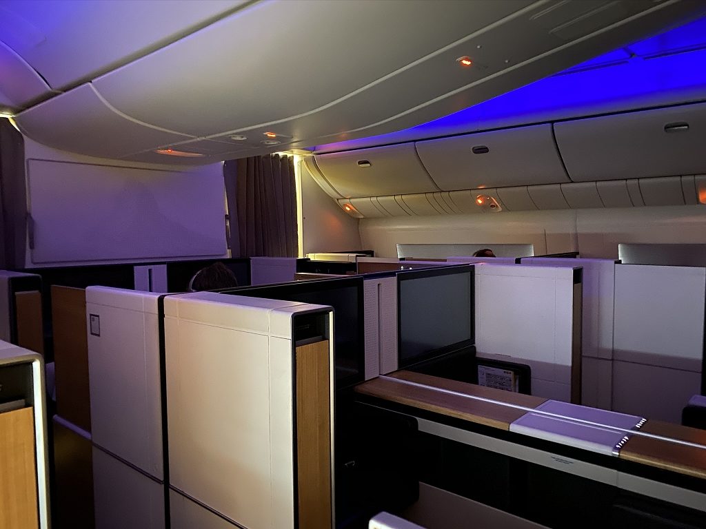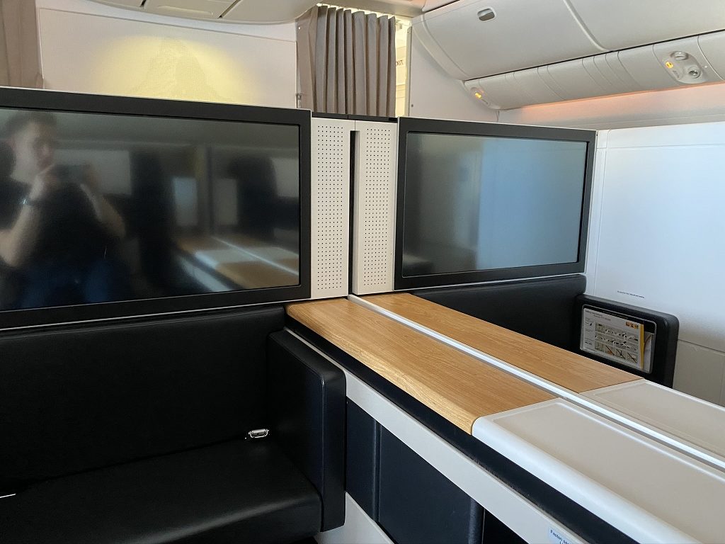 Von den acht Semi-Suiten, welche in einem 1-2-1 Layout angeordnet waren, blieben 2D und G frei. Somit versprach es ein noch entspannterer Flug zu werden, da mein „Nachbarsitz“ frei blieb.