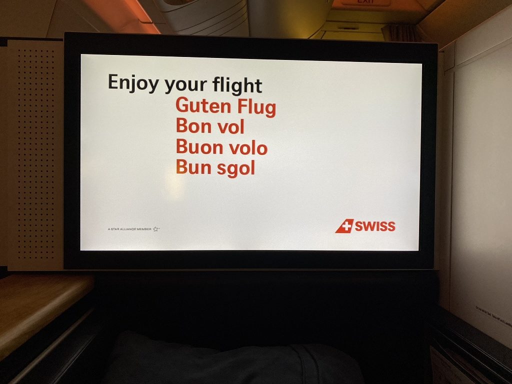 Gleich im Anschluss stellten sich die zwei Flugbegleiter vor. Die Dame brachte mir die Speise und Getränke Karte und stellte sich humorvoll als fliegendes Urgestein vor. Ehrlich gesagt hätte sie meine Oma sein können, doch genau das brachte die Empathie zu ihr und mir gegenüber zeigte sie, wie sehr sie ihren Job noch liebt und genau das ist es ja, was jeder in seinem Job empfinden sollte. Der zweite Flugbegleiter der First Class war ein junger Mann, welcher mir den Pyjama der Firma Zimmerli und den Internet-Voucher überreichte. Auch er zeigte ab der ersten Minute, wie sehr ihm sein Job Spaß macht.