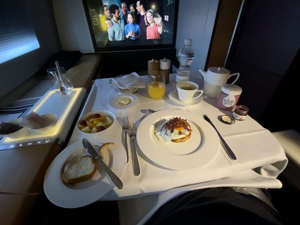 Alles hat wirklich vorzüglich geschmeckt, jedoch war ein „Verdauerli“, wie es die Flugbegleiterin anbot, wirklich nötig.