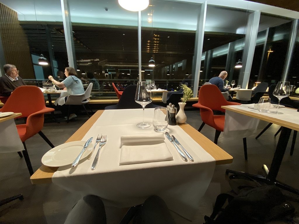 Mit einem Caesar-Salad gefolgt von Züricher Geschnetzeltem und einem kombinierten Wein- und Gintasting mit dem sehr aufgeweckten Kellner und den Gästen vom Nachbartisch, verging die Zeit erneut viel zu schnell und gegen 22:15 Uhr hieß es für mich: Boarding. Angenehmer habe ich noch nie mehrere Stunden am Flughafen verbracht und ich kann Euch nur empfehlen minimum vier Stunden Transferzeit einzuplanen.