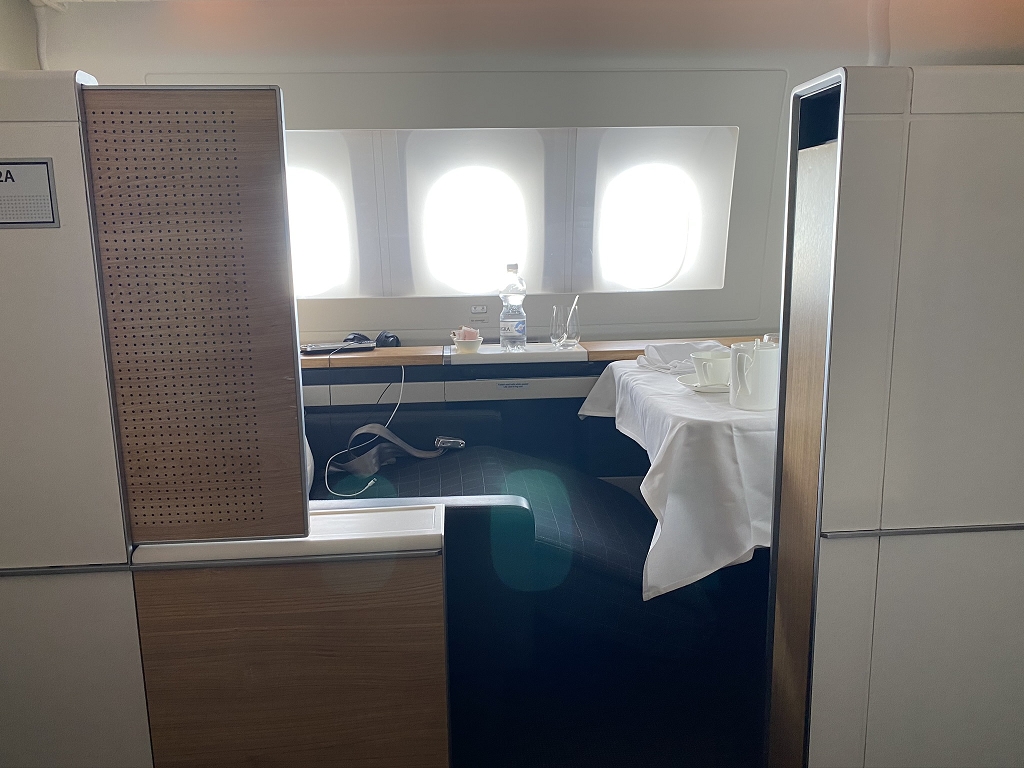 An der Tür wurde ich wieder einmal sehr herzlich begrüßt und zu meinem Sitz an Bord der Boeing 777-300ER begleitet.