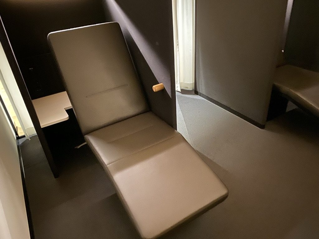 Wer in der Lounge nach Steckdosen sucht, wird meist hinter der Kopflehne der Sitzmöbel fündig. Im ersten Moment waren wir überrascht nicht direkt welche zu sehen, allerdings ist es optisch einfach schöner, nicht überall die freigelegten Steckdosenleisten zu sehen. Well done Swiss!