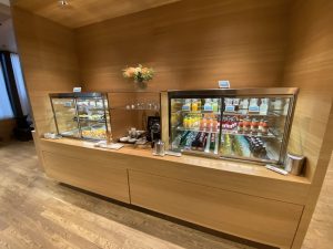 Neben dem erwähnten á la Carte Bereich, gibt es in der Lounge auch noch ein kleines Buffet, ähnlich zu dem in der „alten“ First Class Lounge A. Die Karte des Restaurants ist hierbei identisch, zu der in der Lounge bei den E Gates.