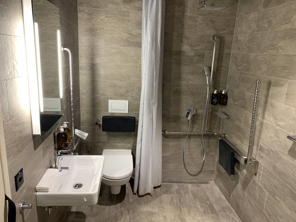 Auch in Zürich waren die Toiletten top sauber und sehr gepflegt. Hinter einer Milchglas-Schiebetür verbergen sich ausreichend WCs und Pissoirs, sowie diverse Waschtische. Die Duschen selbst befinden sich nicht bei den Toiletten sondern in der Nähe der Rezeption. Scheinbar gibt es nur zwei Duschen, die sich dann auch noch Business und Senator Lounge teilen.