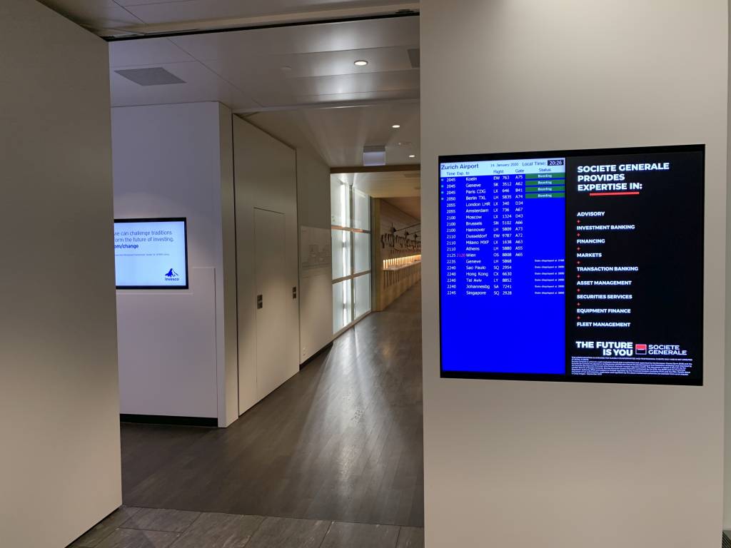 Die Rezeption teilen sich die Swiss Business Lounge, welche den Eingang links von der Rezeption hat, und die Swiss Senator Lounge rechts von der Rezeption.