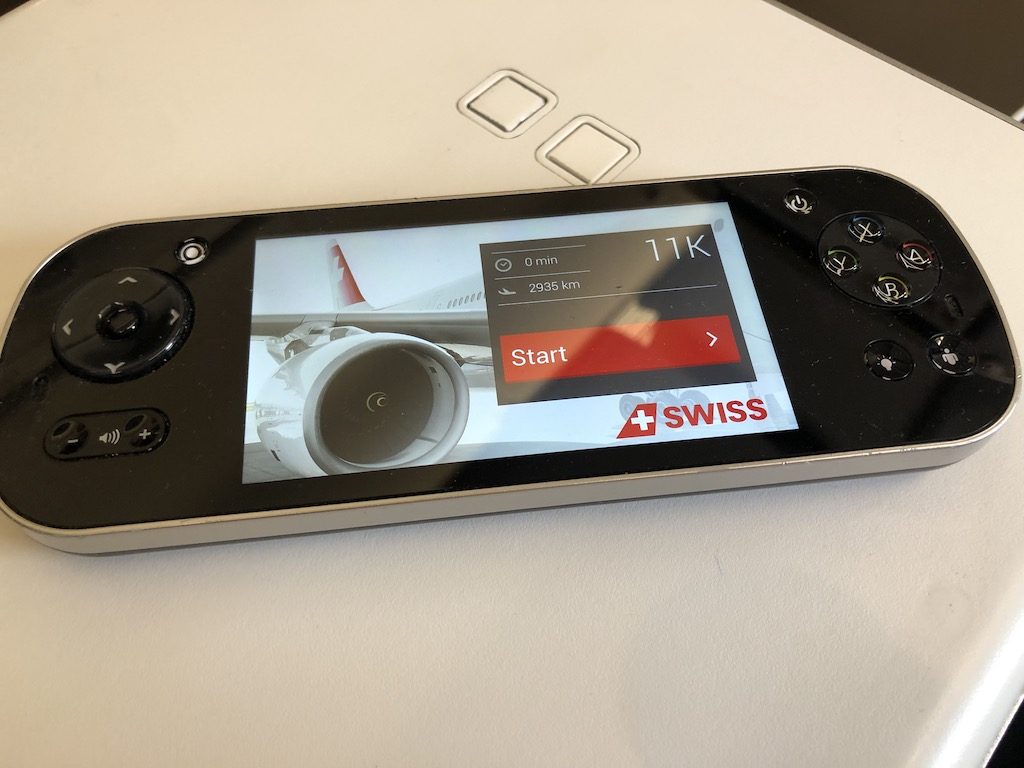 Mein Sitzplatz war heute 11K, einer der beiden fensterlosen in der Business-Kabine. Bei der 2–2-1 Anordnung der Swiss kam der als „Thron“ bezeichnete Einzelplatz für uns nicht in Frage, ich wollte aber nicht in dem Mittelblock sitzen. Daher war ich mit der Wahl doch ganz zufrieden. Da die meisten Gäste in der Business Class Einzelreisende sind, kommen die einzelnen Sitze sehr gut an. Dort sind neben der Privatsphäre auch mehr Ablagemöglichkeiten vorhanden als beim Doppelsitz.