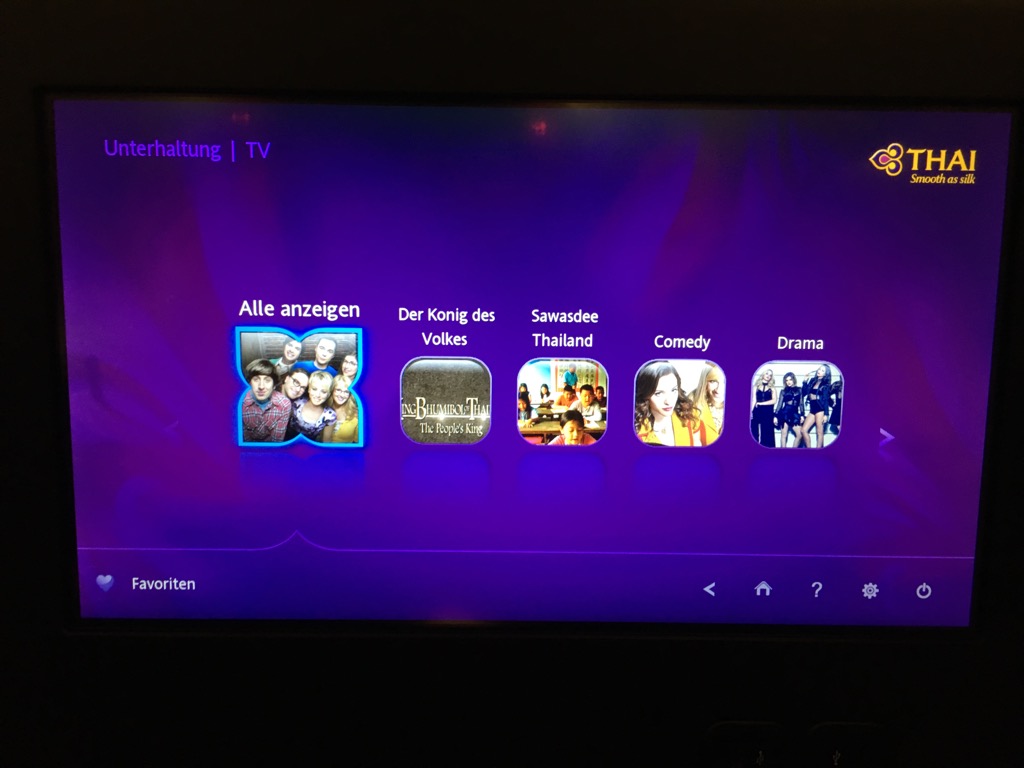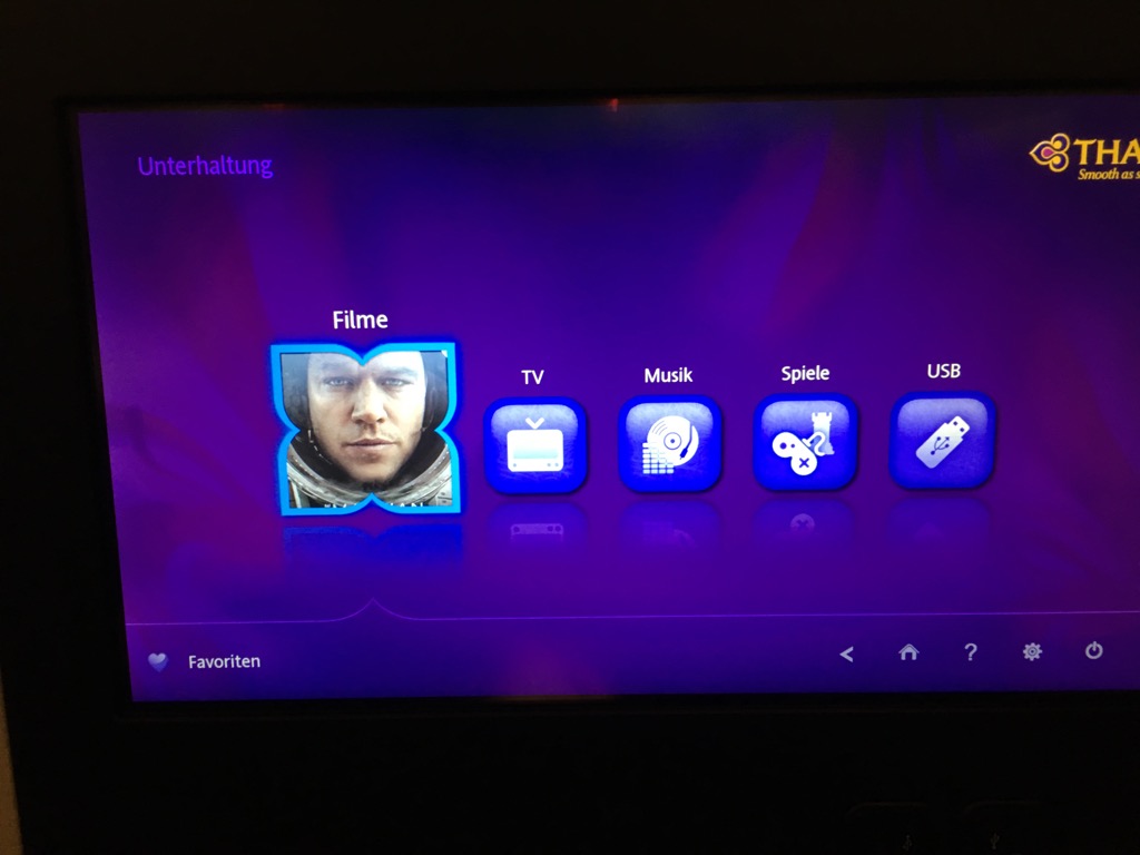 Überraschend groß war die Auswahl im IFE. Neben vielen aktuellen Filmen und Serien, gab es auch eine Reihe von Spielen, Musik und natürlich eine Moving Map. Interessanterweise waren viele Filme in einer Reihe von Sprachen verfügbar, inkl. vielen Titeln auf Deutsch.