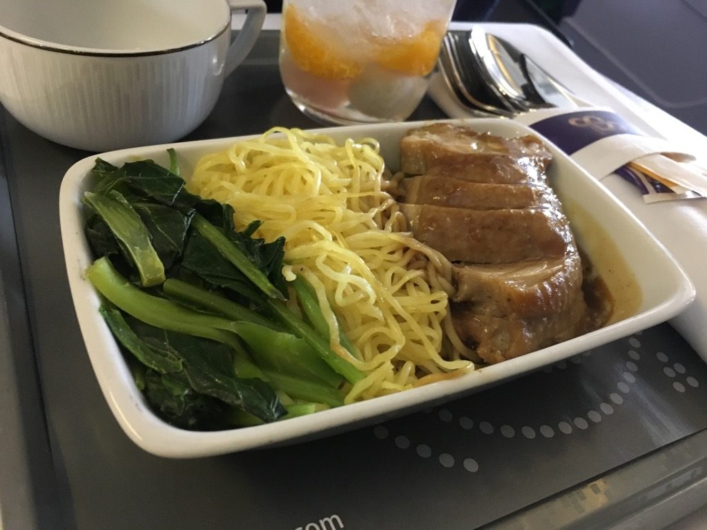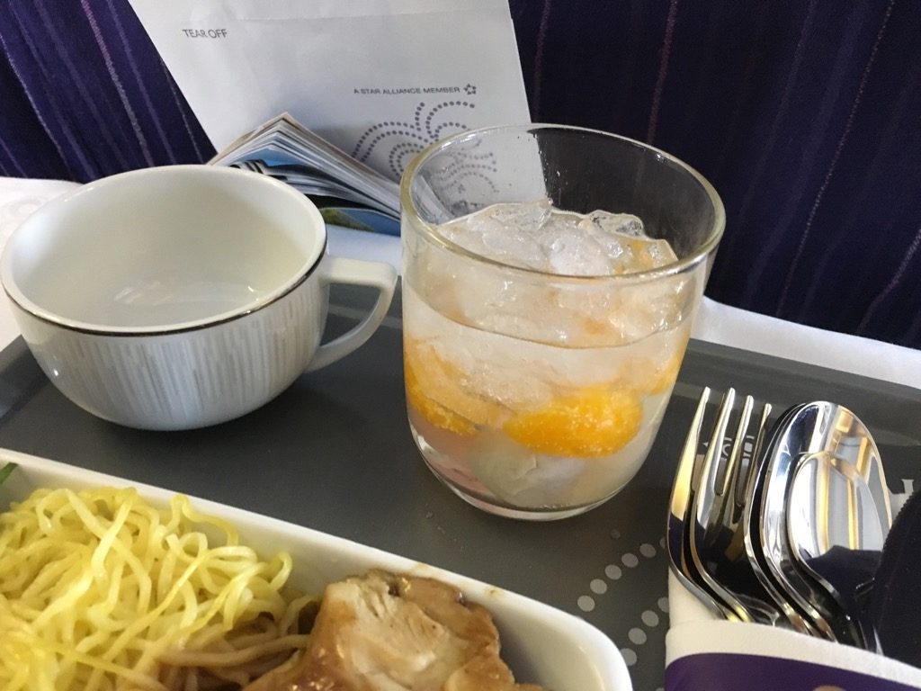 Auch wenn es natürlich beeindruckend war, dass Thai auf dem kurzen Flug ein warmes Essen serviert, war ich von der Qualität des Essens weniger begeistert. Ein Teller mit kalten Speisen, so wie es bei Lufthansa serviert wird, hätte mir hier besser gefallen.