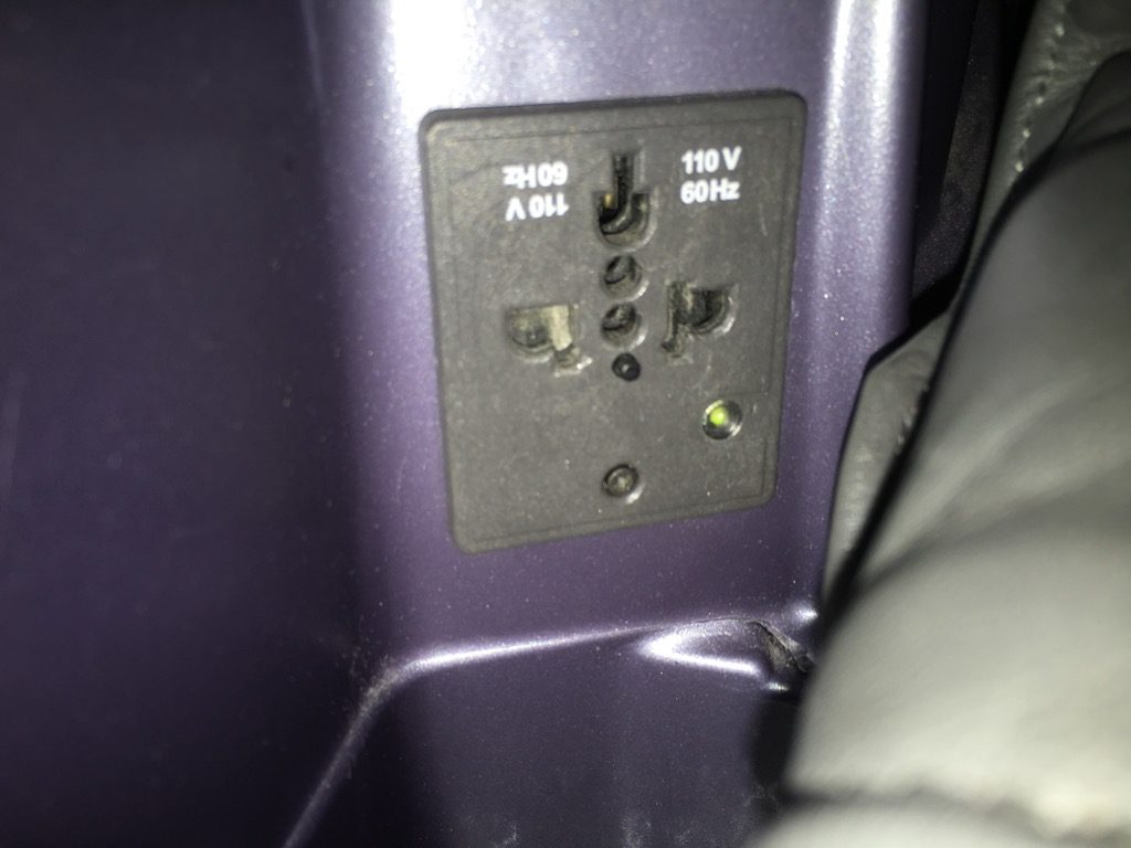 Positiv überrascht war ich, dass ich am Sitz doch eine 110 Volt Steckdose gefunden habe. Hierüber habe ich im Internet vor dem Flug unterschiedliche Informationen gefunden.