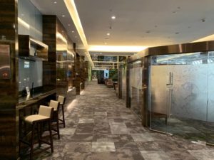Aber auch Einrichtung und Design der restlichen Lounge konnten überzeugen. Gemütliche Sitzgelegenheiten und Plätze für einen Snack waren ausreichend vorhanden. Ab und an werden die einzelnen Bereiche durch Raumteiler abgetrennt, die mit künstlichen Pflanzen dekoriert sind. Das schafft eine angenehme Atmosphäre.