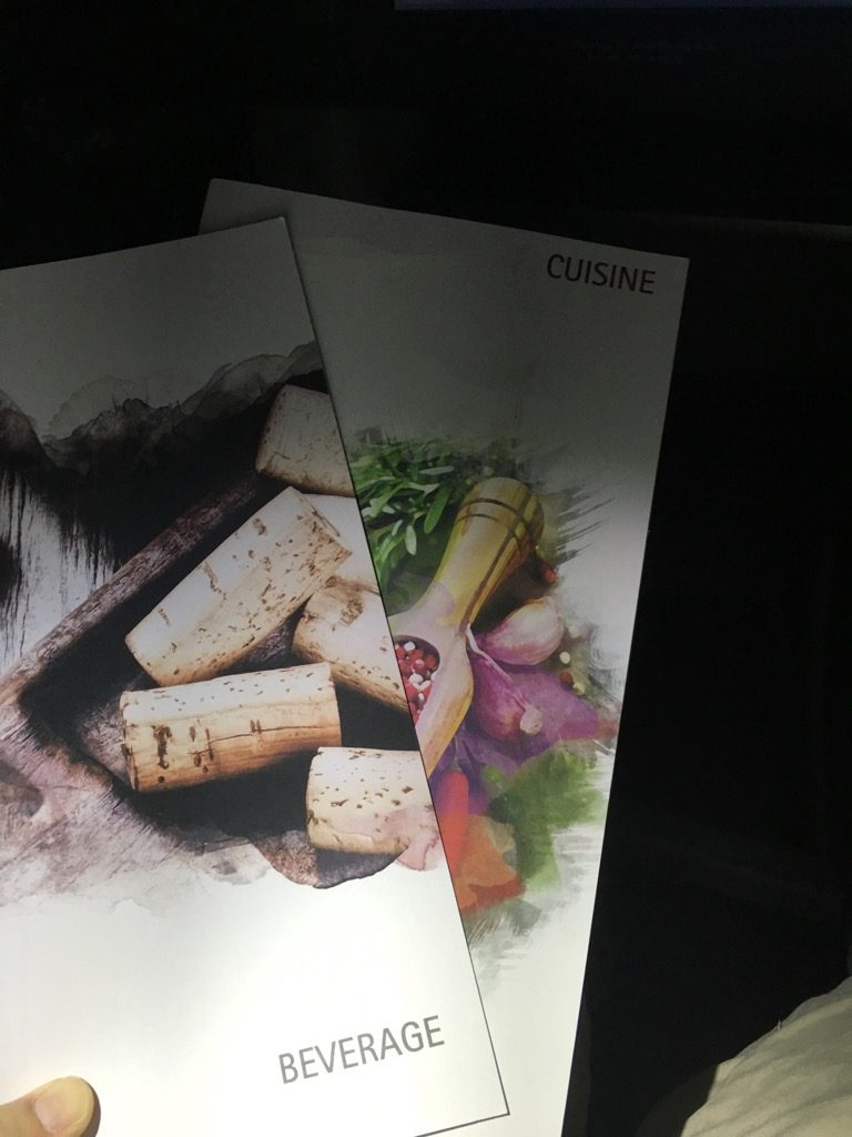 Schon wenige Minuten nach dem Start wurden die Anschnallzeichen ausgeschaltet und die Crew begann mit ihrem Service. Zuerst wurden die Speisekarten verteilt, sowie erste Getränkewünsche abgefragt. Übrigens wählt man in der Thai Business Class immer eine Vorspeisen- und Hauptspeisen Kombination aus. Die verschiedenen Vorspeisen und Hauptspeisen sind nicht frei miteinander kombinierbar.