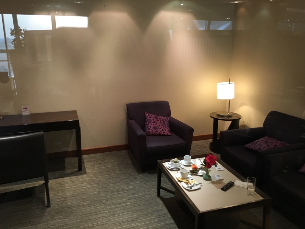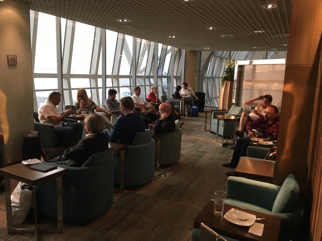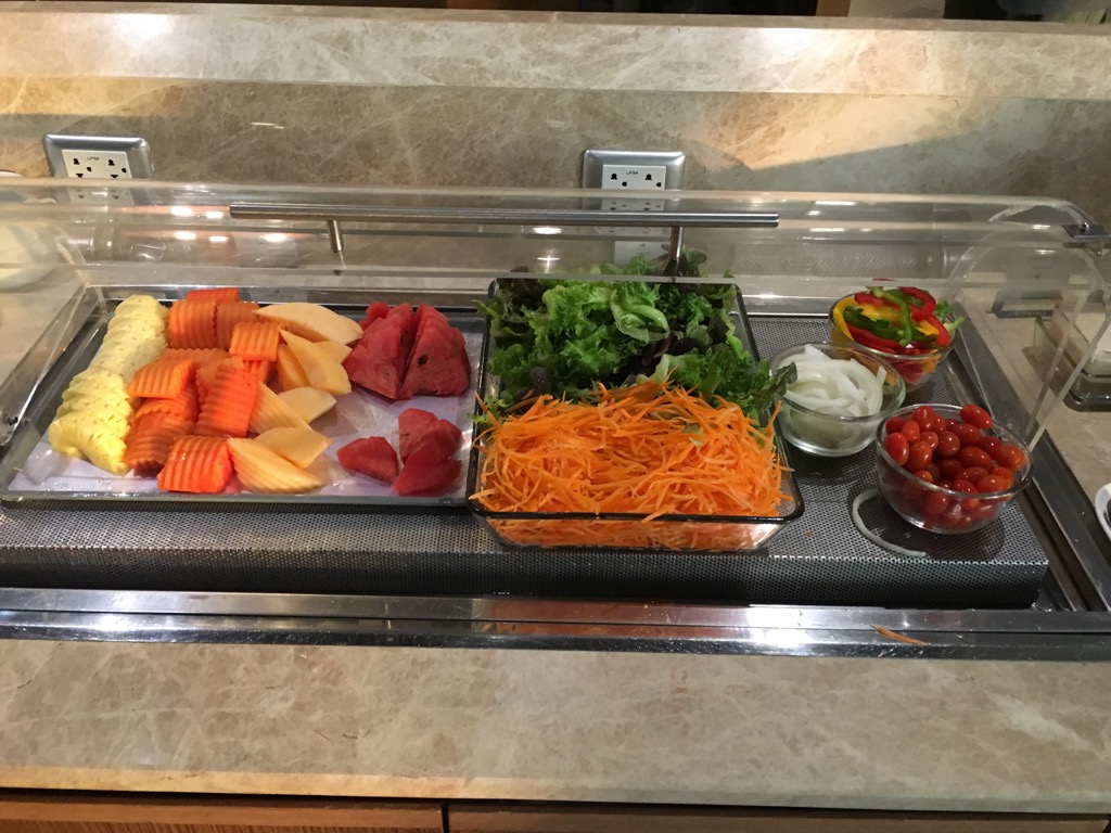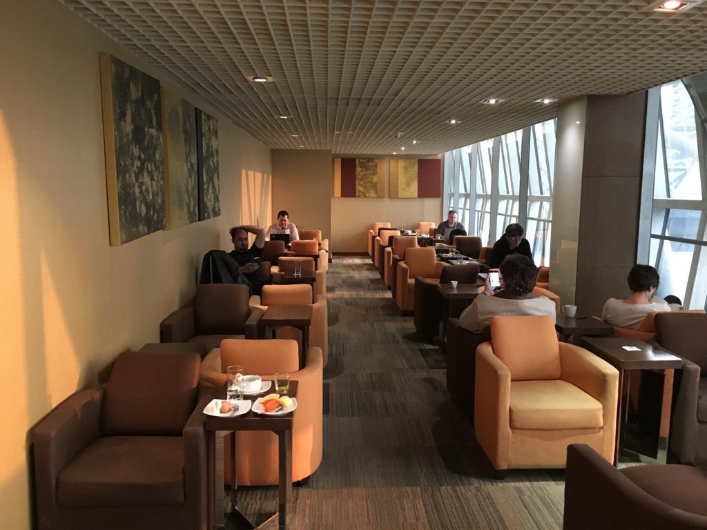 Auch wenn die Auswahl für eine Business Lounge verhältnismäßig groß war, schien mir das Angebot doch recht frei zusammengewürfelt zu sein. Wir haben in der Lounge auch nichts gegessen, da wir zum einen noch satt von unserem Flug waren und zum anderen die Speisen auch nicht extrem einladend auf uns wirkten, was auch insbesondere damit zusammenhing, dass sowohl das Buffet, als auch die Lounge nicht regelmäßig wieder hergerichtet wurden.