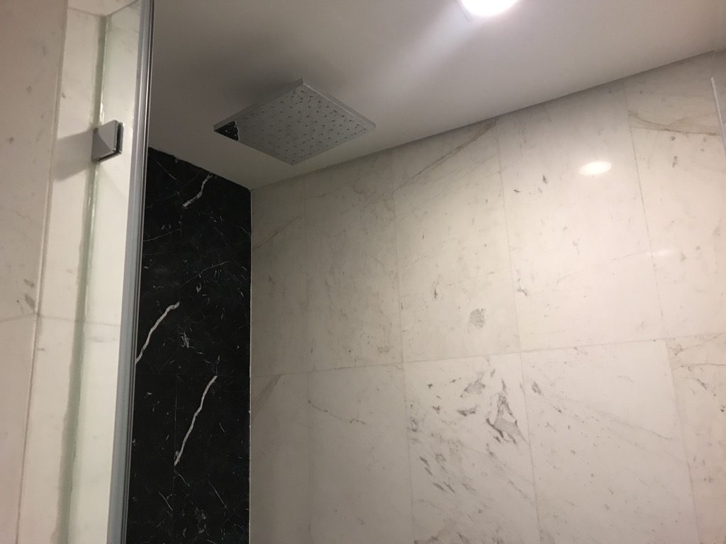 Neben der Toilette befand sich im Bad noch eine große Dusche mit Regenduschkopf. Auch hier standen Amenities bereit. Das Bad war sehr sauber und in einem gepflegten Zustand.