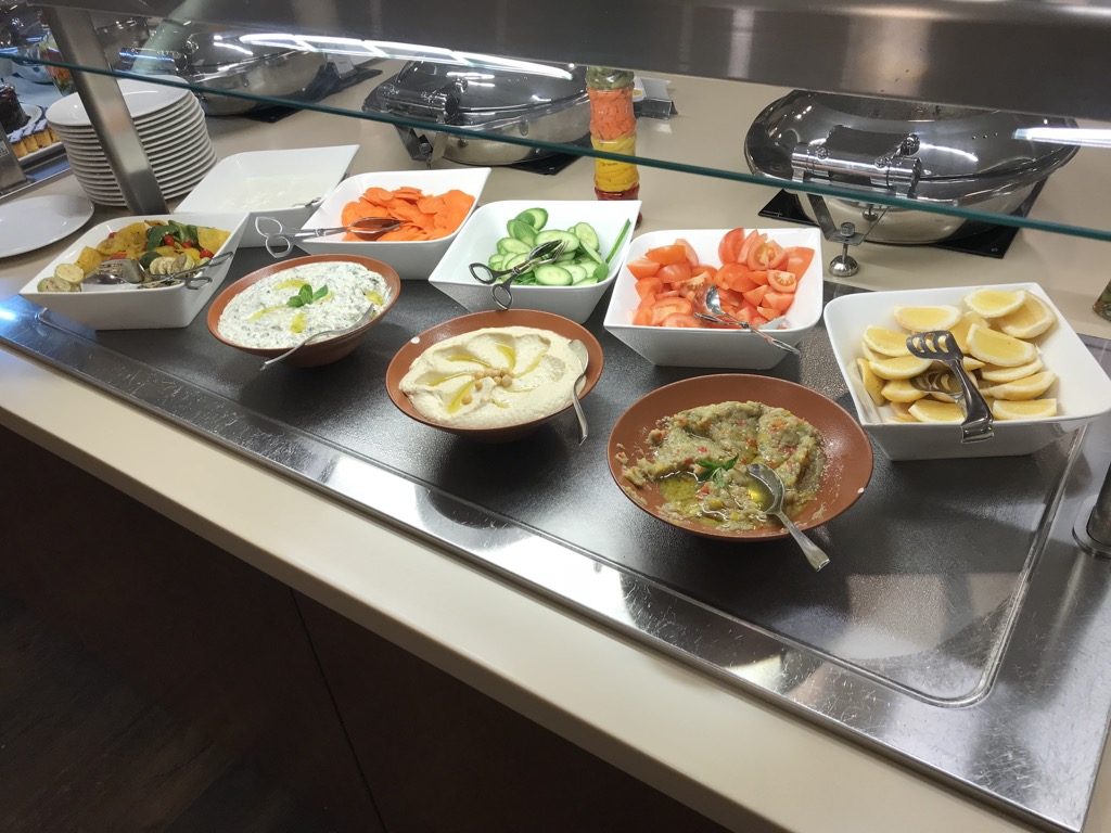 Beim Abendessen war das Buffet ähnlich aufgebaut. Hier gab es zusätzlich noch viele leckere verschiedene Salate, verschiedene Kuchen und Nachspeisen und täglich wechselnde warme Speisen. Auch hier war wieder alles Angebotene frisch und geschmacklich gut. Bei allen Mahlzeiten war das Personal freundlich und hat zügig die Tische abgeräumt oder das Buffet aufgefüllt.