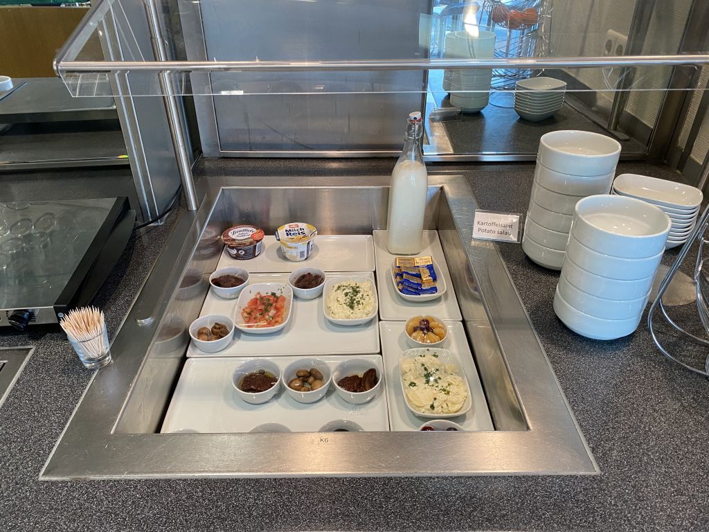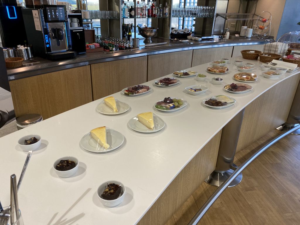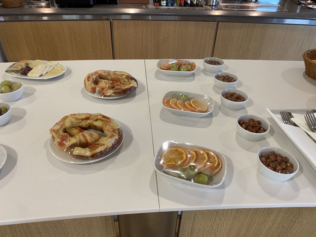 Noch bietet die Lounge nicht den vollen Speise-Service. Eine Auswahl an Snack steht jedoch auf einer Theke bereit. Als ich am späten Nachmittag/Abend die vor Ort war, gab es eine Auswahl an Kuchen, Süßigkeiten, kleine Platten mit Aufschnitt/Tapas und Käsebretzeln, sowie etwas Obst.