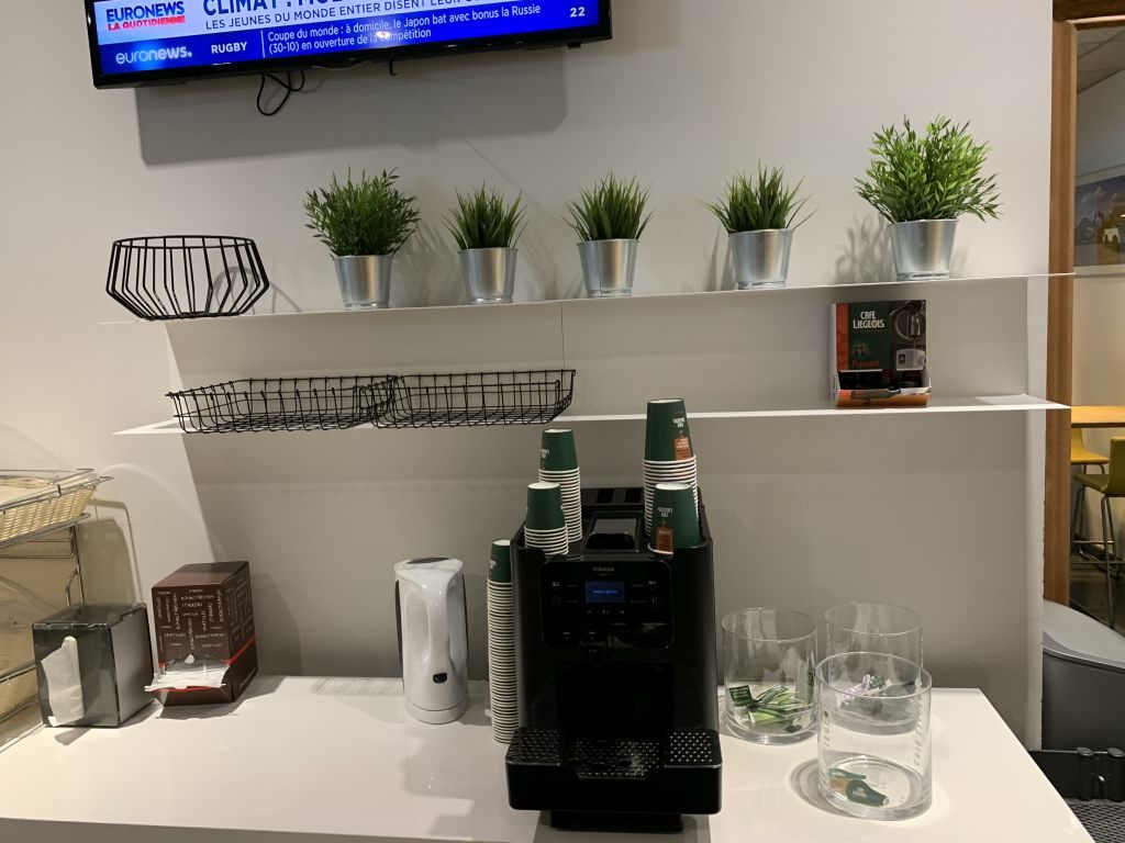 Zumindest die Kaffee-Maschine war bei unserem aktuellen Aufenthalt – nicht wie beim letzten Mal – komplett zerpflückt und verdreckt. Und es standen sogar einige Kaffeekapseln bereit. Den Kaffee tranken wir aus Pappbechern.