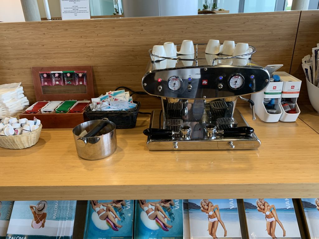 Na klar, auf den Lounge-Fotos, die auf prioritypass.com genutzt werden, serviert eine Kellnerin einen Sparkling Wine am Platz. In der Realität war Service so gut wie gar nicht präsent. Maximal wurde jede Stunde mal der Tisch abgeräumt. Dies aber auch nur, wenn man das dreckige Geschirr schon zur Seite geräumt hatte.