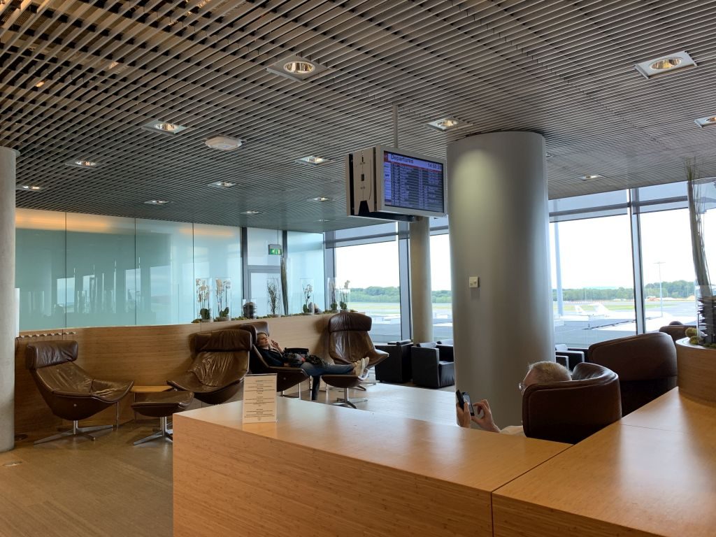 Also gingen wir endlich zur Rezeption und informierten die Mitarbeiterin, dass wir derzeit noch keine Boardkarten für unseren Weiterflug ab Luxembourg haben.  Aber unsere Buchung sei in der Business Class der Lufthansa mit dem Abendflug von Luxemburg nach Frankfurt. Die Mitarbeiterin an der Rezeption durchforstete ihre Liste und teilte uns mit, dass wir ab vier Stunden vor Abflug, also ab 15:00 Uhr in die Lounge dürften. Für Priority Pass Gäste kannte ich ähnliche Regelungen bereits, für Business Class oder Status-Gäste allerdings noch nicht. Daher fragte ich zur Sicherheit noch mal nach, ob dies auch für Business Class Gäste gelte. Mit der Antwort zogen wir unverrichteter Dinge wieder ab.