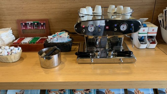 In der Lounge standen zusätzlich Kaffeeautomaten zur Zubereitung von Kaffee-Spezialitäten bereitet. Ebenfalls gab es einen Zapfhahn für Bier. Dieser war jedoch bei unserem Besuch defekt.