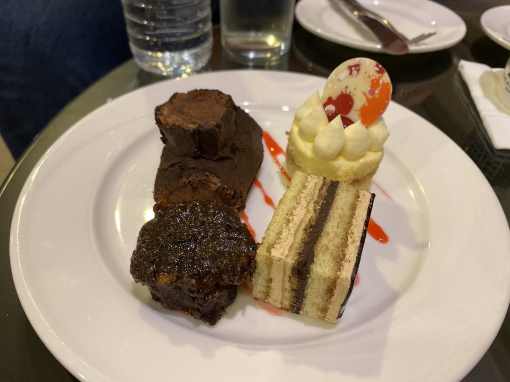 Zur Happy Hour konnte man bei den Kellnern Alkoholika bestellen und bekam eine (wirklich kleine) Auswahl Snacks. Zum High Tea exakt das gleiche. Wir bekamen zu zweit vier daumengroße Stück Kuchen. Eine zweite Runde wurde uns nicht angeboten, wir haben aber auch nicht aktiv gefragt. Das Personal war in der Lounge in einer Vielzahl anwesend, aber nicht präsent dem Gast gegenüber. Meist standen alle vier/fünf direkt am Eingang und kamen alle 35 Minuten mal durch, um das schmutzige Geschirr abzuräumen.