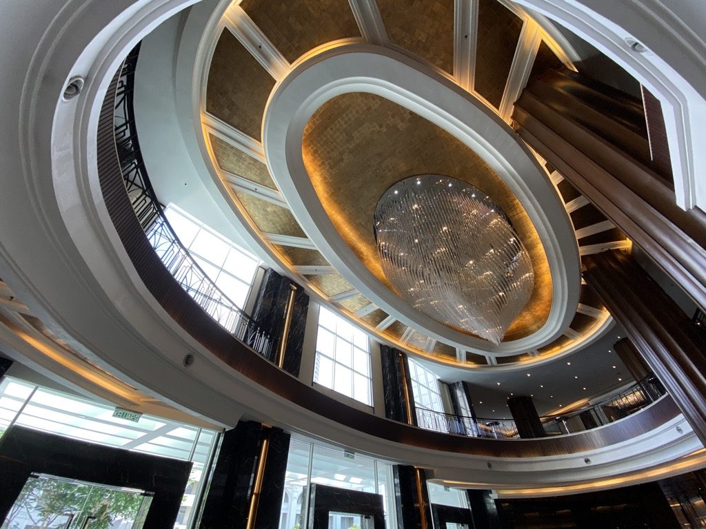 Direkt bei der Ankunft wurde uns das Gepäck höflich abgenommen und wir wurden zum Check-In gebeten. Hier war bei unserer Ankunft nur ein Mitarbeiter, weswegen wir etwa zehn Minuten warten mussten. Kein Problem, so konnten wir uns in Ruhe in der imposanten Lobby umsehen.