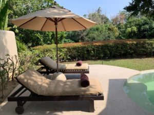 Liegen sind sowohl am Pool als auch am Strand ausreichend vorhanden. Selbst wenn wir erst gegen Mittag zum Strand gegangen sind, haben wir noch ein schattiges Plätzchen unter einem der Bäume oder Sonnenschirme gefunden. Einige Sonnenliegen befinden sich auch in einem noch flacheren Teil des Pools. Für den unwahrscheinlichen Fall, dass Gästen hier zu viel Betrieb ist, gibt es noch den Sala Pool in Mitten des tropischen Gartens des Resorts. Hierhin verirren sich wirklich nur wenige Gäste, so dass man fast ungestört ist.