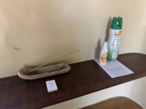 Vor Mücken ist man hier wirklich gut geschützt, denn unter dem Pavillon-Dach befindet sich ein Ventilator. Darüber hinaus gibt es Anti-Moskito-Spiralen und Spray für die Haut. Wir hatten hier im Vorfeld einige Bedenken, wurden aber positiv überrascht.