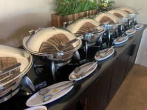 Die umfangreiche Auswahl an a la Carte Speisen wird durch ein noch umfangreicheres Büffet ergänzt. So gibt es eine Auswahl warmer asiatischer Gerichte, Brot, Gebäck und vieles Weiteres. In einem separaten gekühlten Raum gibt es eine hochwertige Auswahl an Wurst und Käse. Dazu Joghurt, Milch und Smoothies. Auch Salat und täglich wechselndes Sushi gehören zum Angebot.