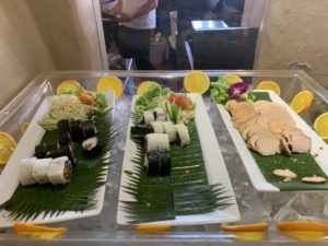 Auf den Tischen stehen während der Frühstückszeiten von 6:30 bis 11:00 Uhr Kärtchen mit „made to order“-Optionen. Diese gehen deutlich über die üblichen Eier-Speisen hinaus. So könnt Ihr Euch zum Beispiel zunächst eine Portion gegrillten Lachs und danach noch eine Portion Steak und ein Naka Island style french toast mit Schokolade, Kokos und Mascarpone bestellen.