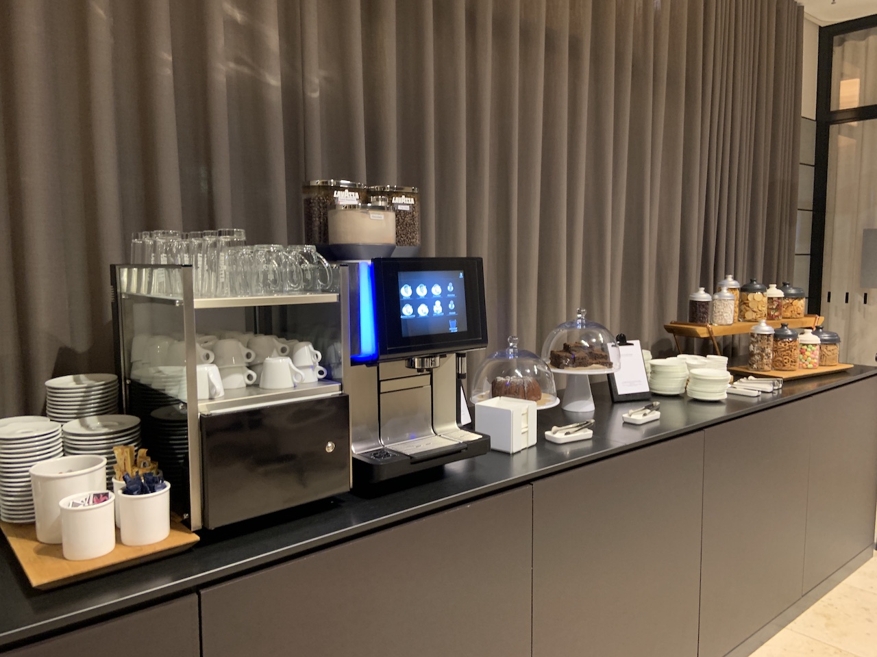 Getränke, sowie Kaffee und Tee konnten selbst zubereitet und geholt werden. Leider war der Cappuccino aus dem Vollautomaten nicht der Beste, der Kuchen hingegen vorzüglich.