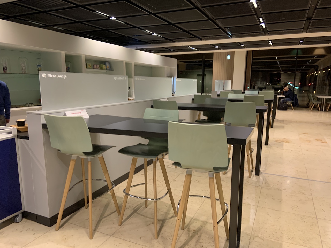 Tolle Lounge! Für Flüge außerhalb des Schengenraums hat man Zugang zu einer eigenen Passkontrolle direkt hinter der Lounge. Im Juli saß dort abends ein sehr netter Kollege 🙂