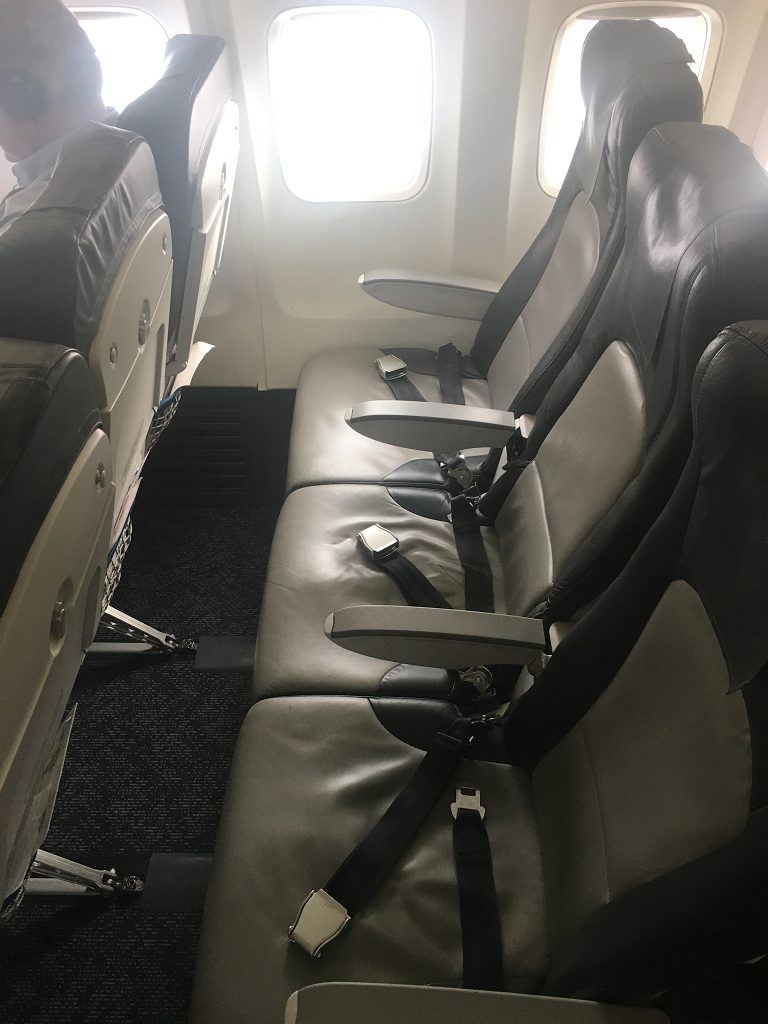 Der Sitzplatz ist typisch für innereuropäische Economy Flüge und mit einem Kunstlederüberzug bezogen. Er fühlt sich neu an und gibt ein angenehmes Sitzgefühl. Der Sitzabstand ist für einen 2h Flug vollkommen ausreichend und die Rückseite des Sitzes ist so konzipiert, dass man auch ausreichend Beinfreiheit hat.