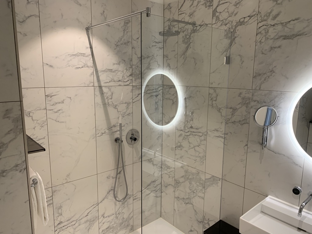Mein Zimmer lag im zweiten Stock. Direkt nach dem Eingang auf der linken Seite befand sich das Badezimmer, welches mit einer großzügigen Walk-In Dusche, einem Waschbecken und einer Toilette ausgestattet war. Am Waschbecken stand eine vollständige Auswahl an Amenities bereit, zudem verfügte es über ausreichend Ablagefläche.