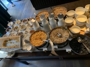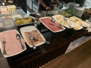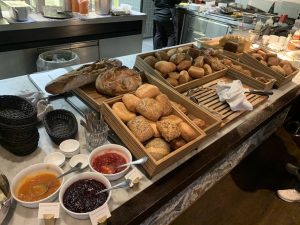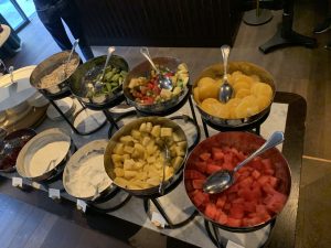 Am nächsten Morgen wurde im Erdgeschoss des Hotels das Frühstück serviert. Neben einer vollständigen Buffet Auswahl mit Säften, Wasser, Wurst, Käse, Obst, Brot und Brötchen konnte man aus einer großzügigen Karte weitere Speisen bestellen. Ich habe mir Eggs-Benedict, einen French-Toast und Krabben bestellt. Alle angebotenen Speisen waren extrem lecker und toll angerichtet.